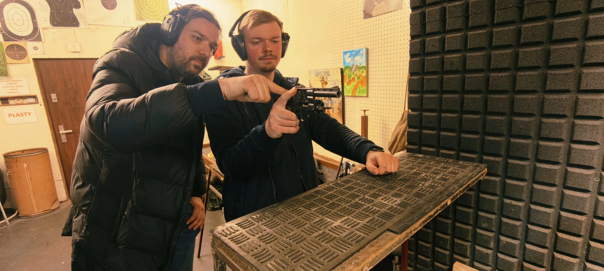 K výuce je pronajímána střelnice Kapslovna na adrese Sauerova 3, Praha 3.